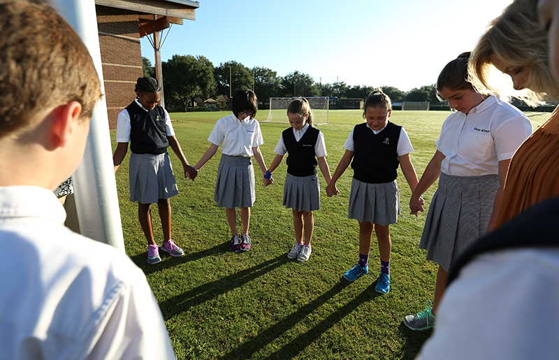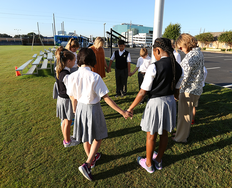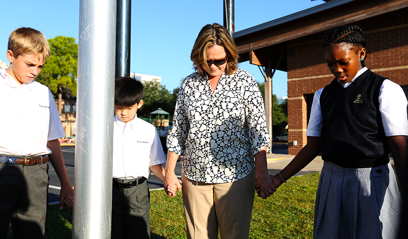 Some might think attending or working for a Christian school where there are no prohibitions on prayer might lessen the impact of “See You at the Pole” day.  Not so.  This morning, Grace students from kindergarten through eighth grade joined parents and staff to acknowledge the blessings which have been bestowed upon them. They prayed for those less fortunate and worshipped the One who makes all things possible.