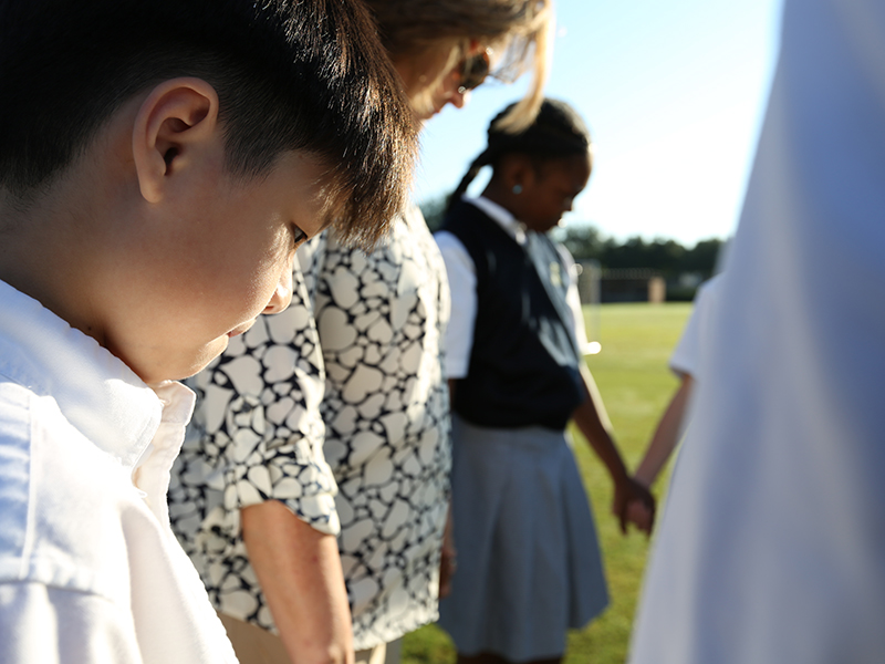 This morning’s gathering began with Grace’s student choir singing, “It’s me. It’s me. It’s me oh Lord standing in the need of prayer.”  Together everyone stood in need of prayer, but more importantly in support of one another.  There’s no doubt this is the most important lesson our kids will learn today in or out of class.